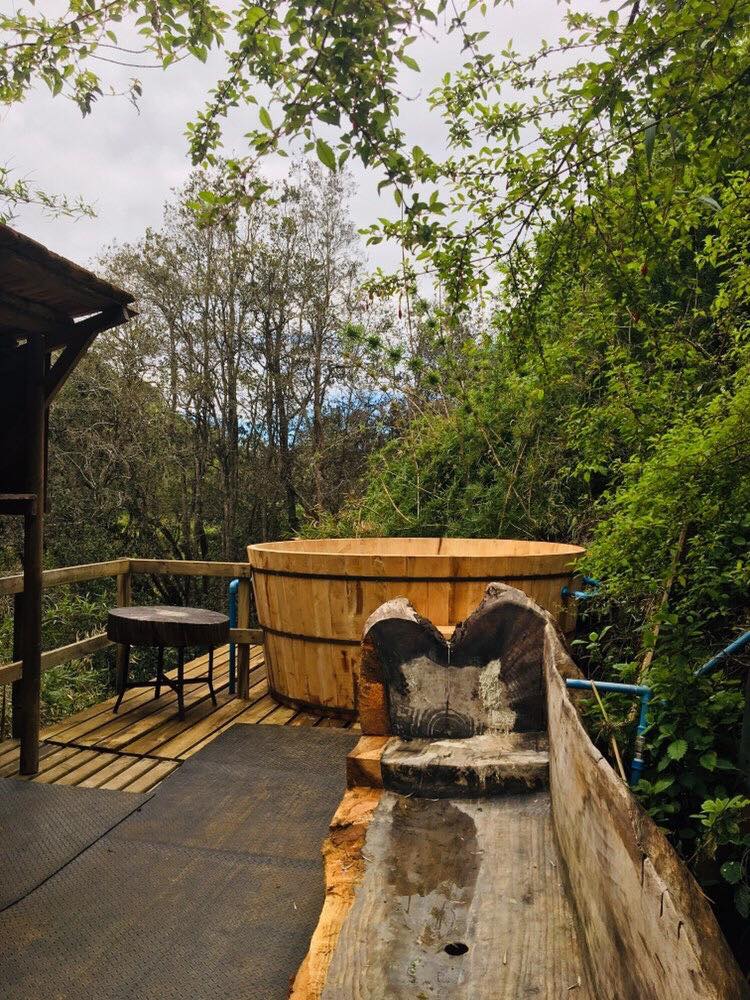 • Tinajas: Relájate en nuestras tinajas de agua caliente ubicadas al lado de las cabañas o en las terrazas.