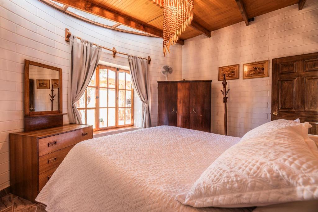 La Cabaña Pimientos, es una opción de alojamiento económica en San Pedro de Atacama, construida de piedra y adobe y ubicada a solo 10 minutos a pie de la Calle Caracoles. Esta cabaña ofrece una habitación con cama doble, baño privado y una amplia área de estar con sala, comedor y cocina completamente equipada. ¡Una buena opción si buscas cabañas en San Pedro de Atacama económica!